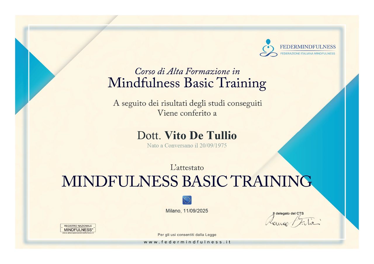 Sono Vito De Tullio, Psicologo e Facilitatore Mindfulness.